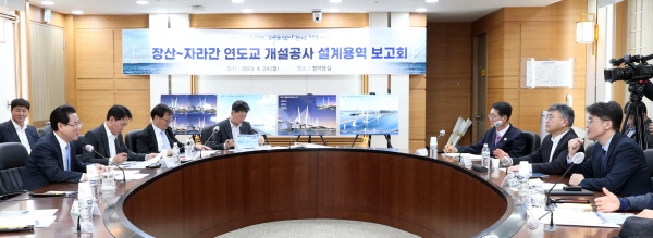 [충청뉴스큐] 전라남도는 섬 주민 교통 불편 해소와 남해안 해양관광벨트 구축을 위한 ‘장산~자라 연도교 설계용역 추진상황 보고회’를 지난 24일 도청 정약용실에서 개최하고 추진상황을 점검했다.