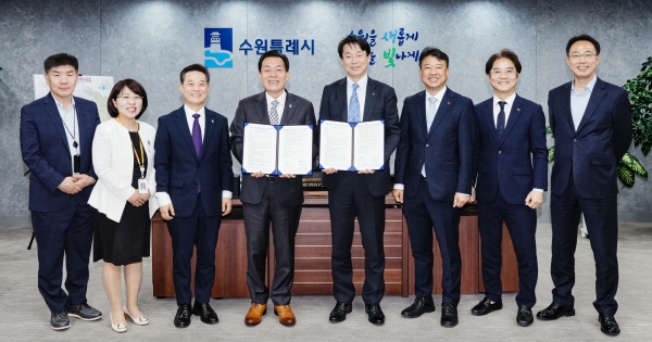 이날 협약식에는 이재준 수원특례시장, 김경덕 SK브로드밴드 CIC장 등이 참석했다.