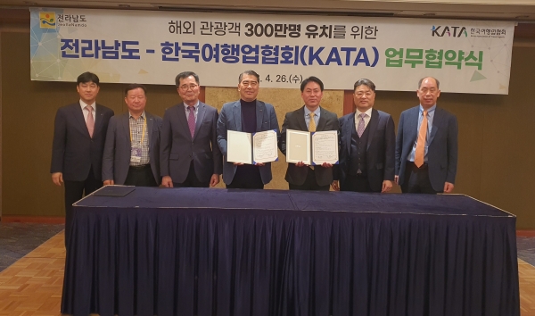 [충청뉴스큐] 전라남도는 26일 서울 롯데호텔에서 한국여행업협회와 관광상품 공동 개발·홍보를 위한 전남 관광 활성화 업무협약을 했다.