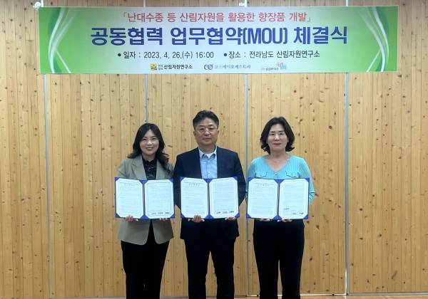 오득실 전남도산림자원연구소장은 “코스메틱오케스트라, 섬섬바이오와업무 협약을 통해 전남의 우수한 산림자원을 대량 생산하는 체계를 구축하도록 공동 노력을 기울이겠다”며 “임가 소득 창출을 통해 부자되는 임업 실현 기반 마련에 힘쓰겠다”고 말했다.