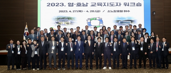 [충청뉴스큐] 전라남도교육청과 경상북도교육청이 27일 ~ 28일 소노캄호텔 여수에서 영호남 교육교류 증진을 위한 교육지도자 워크숍을 개최했다.