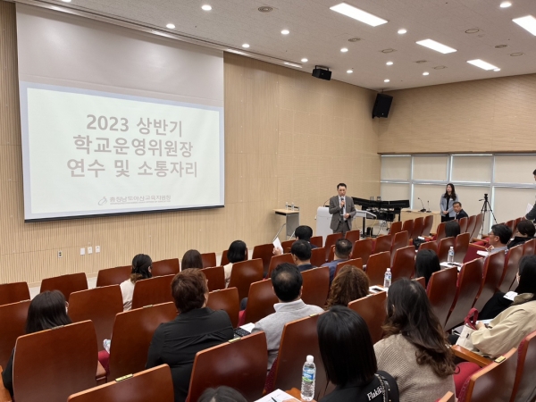 [충청뉴스큐] 아산교육지원청은 26일 충청남도교육청 과학교육원에서 관내 유·초·중·고·특수학교 학교운영위원장 80여명이 참석한 가운데 2023 학교운영위원장 소통자리를 마련했다.