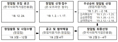 본 사업은 전국적으로 30개 창업지원기관이 모집·접수 서류심사 심층면접 대면심사 최종선정 협약체결의 과정을 거쳐 800여 개 창업팀 육성을 진행하고 있으며, 부산권역에는 부산사회적경제네트워크·부산사회적기업협의회 컨소시엄, 사회적기업연구원, 부산디자인센터 3개 기관이 총 90개 팀을 육성한다.