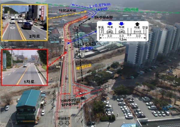 ‘덕성~천리간 도로’는 백옥대로 중로1-18호의 왕복2차로로서 덕성리에서 천리 방향으로 차량 통행량이 많고 덕성산업단지 앞 도로에서 SK승원주유소까지 도로가 편도2차로이나 SK승원주유소부터 제1천리교 구간은 편도1차로로 차로감소에 따른 병목현상이 발생하고 있어 상습적으로 정체가 이루어져 도로 확포장 민원이 높았던 곳이다.