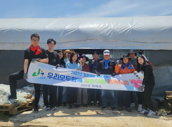 [충청뉴스큐] 충북 괴산군 경제과·행정과 직원들이 3일 일손이음 지원봉사로 구슬땀을 흘리며 더불어 사는 지역사회를 더욱 따뜻하게 하고 있다.