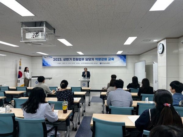 [충청뉴스큐] 전라남도교육청이 3일 순천만생태문화교육원에서 민원업무 담당 공무원 50여명을 대상으로 ‘2023. 상반기 민원업무 담당자 역량강화 교육’을 실시했다.