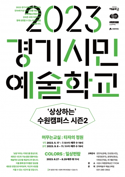 [충청뉴스큐] 수원문화재단은 경기문화재단이 주최하는 2023 경기시민예술학교 기초협력사업에 재선정되어 2023 경기시민예술학교‘상상하는 수원캠퍼스 시즌 2’를 수원시민에게 선보인다.