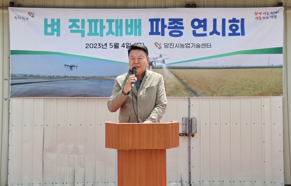 이에 농업기술센터는 우강면 소반리 직파재배 농가 포장에서 오성환 당진시장을 비롯한 관계자와 직파재배 관심 농가 등 40여명이 참석한 가운데 연시회를 개최했다.