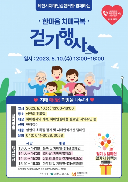 [충청뉴스큐] 제천시는 오는 10일 오후 1시부터 4시까지 삼한의 초록길 일원에서 ‘한마음 치매극복 걷기행사’를 개최한다.
