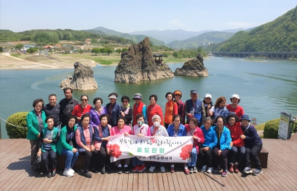 이날 서탄면 새마을부녀회 회원들은 평소 다른 지역을 관광하기 어려운 관내 어르신 20여명을 모시고 충북 단양 도담삼봉과 고수동굴 등을 관람하고 주변 경관을 구경하는 시간을 가졌다.