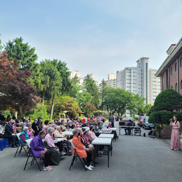 [충청뉴스큐] 어버이날인 8일 오후, 수원시 조원동에 있는 무료 양로시설인 ‘평화의 모후원’ 앞마당에서 ‘5월 작은 음악회’가 열렸다.