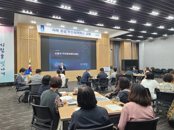 [충청뉴스큐] 수원시는 8일 시청 중회의실에서 제6기 주민참여예산위원회 위원, 구 지역회의 위원, 주민참여예산 운영에 관심 있는 수원시민 등을 대상으로 ‘사례 중심 주민참여예산 교육’을 했다.