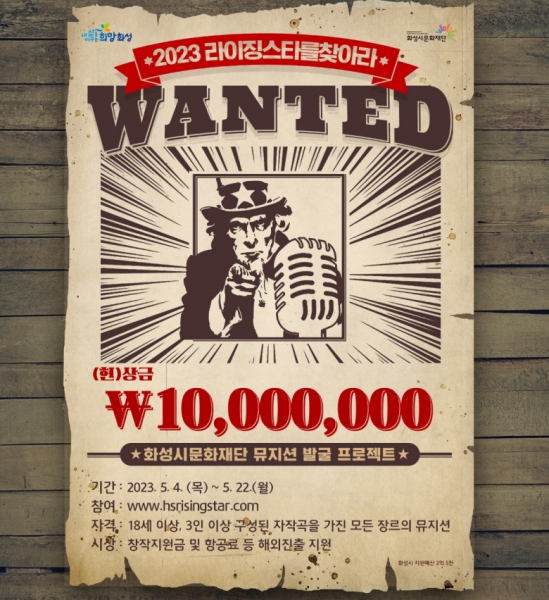 [충청뉴스큐] 화성시문화재단의 뮤지션 발굴 프로젝트 ‘2023 라이징스타를 찾아라’가 5월 4일 참여팀 모집을 시작으로 대장정의 막을 올렸다.