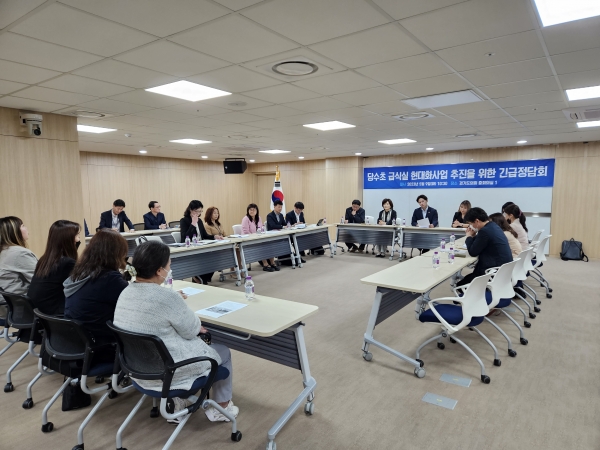 [충청뉴스큐] 경기도의회 문화체육관광위원회 황대호 부위원장은 9일 경기도의회 중회의실에서 당수초등학교 운영위원회·학부모, 당수초등학교장, 수원교육지원청 및 경기도교육청 관계 공무원 등이 참석한 가운데 당수초등학교 급식실 현대화사업 추진을 위한 긴급 정담회를 개최했다.