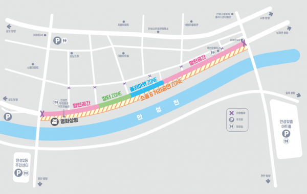 20일 09시부터 20시까지 옥천교~안성교 사이 강변도로 0.7km의 교통통제로 소풍존, 장터존, 플리마켓존, 열린공간으로 구성되며 소풍존 내에서는 개인 돗자리를 지참하면 소풍을 즐길 수 있으며 한경대학생 동아리연합회 재능기부로 4차례 소규모 버스킹 공연도 추진 예정이다.