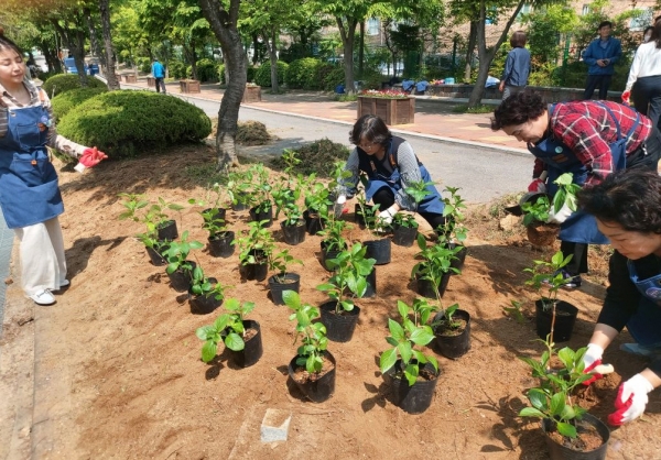 조원1동 주민, 공직자 조원초등학교 관계자, 수원시도시숲연합회 회원 등 20여명은 조원초등학교 내 녹지대에 대추나무 5주, 수국·산철쭉 관목류 130주, 스텔라원추리 500본을 심어 작은 정원을 조성했다.