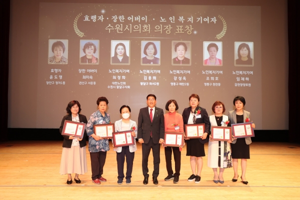 김 의장은 축사를 통해 “어머님, 아버님은 전쟁, IMF 외환위기 등 격동의 시간을 이겨내고 살기 좋은 수원을 만들어주신 주인공”이라고 말하며 “수원특례시가 ‘효도특례시’로 거듭날 수 있도록 수원특례시의회가 열심히 뛰겠다”고 밝혔다.