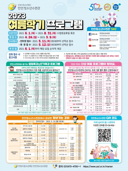 [충청뉴스큐] 안양시청소년재단 산하 만안청소년수련관은 오늘부터 여름학기 신규 수강생을 모집한다.