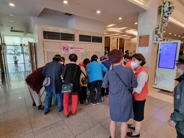 노블레스 웨딩컨벤션 5~6층에서 열린 ‘2023년 지동 경로잔치’에 참석한 어르신을 대상으로 지동 치매안심마을 프로그램을 소개하고 치매에 대한 인식을 개선할 수 있는 내용을 홍보했다.