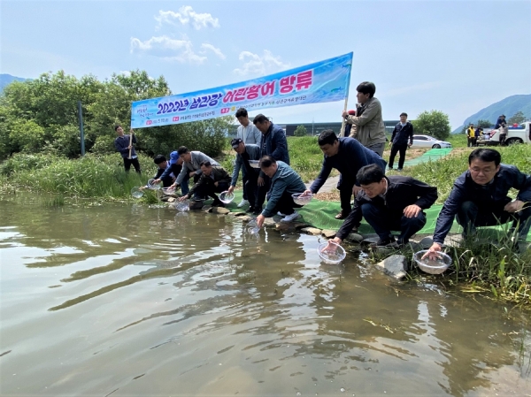 [충청뉴스큐] 전라남도해양수산과학원은 생태계 보호와 어족자원 회복을 위해 섬진강 동방천 수변공원서 어린 황어 50만 마리 방류행사를 지난 11일 개최했다.