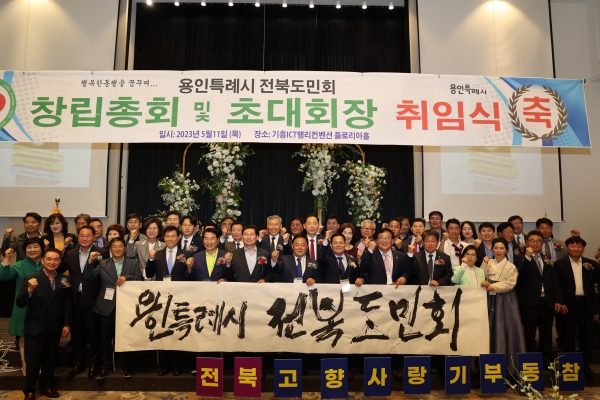 총회에서 창립회장으로 추대된 고석곤 회장은 “용인특례시에 거주하는 전북도민의 자긍심을 고취하고 회원 상호 간 친목 도모, 고향과 지역사회 발전에 기여하기 위해 장학금 수여, 고향방문 행사, 고향사랑기부제 적극 참여, 문화예술 공연 제공 등을 적극 추진하겠다”고 포부를 밝혔다.