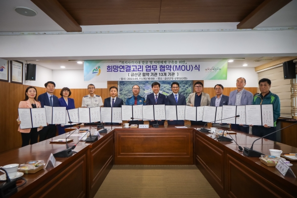 박범인 금산군수는 “희망연결고리 협약에 참여해 준 금산군 13개 기관과 사회단체에 감사드린다”며 “협약을 계기로 더욱 신속하고 다양한 복지사각지대 발굴에 나서 지역 내 고독사와 위기가구 문제를 해결하겠다”고 말했다.