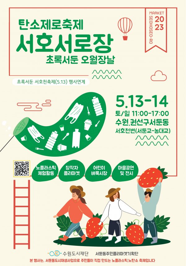 [충청뉴스큐] 수원도시재단은 5월 13일과 14일 서둔동 내 서호천 일원에서 플리마켓 ‘서호서로장, 초록서둔 오월장날’을 진행한다고 밝혔다.