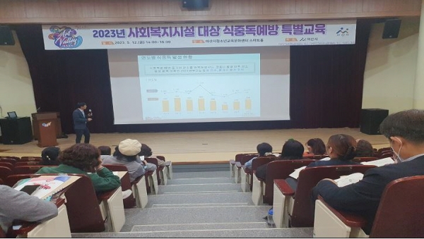 [충청뉴스큐] 아산시가 여름철 식중독 발생 예방을 위해 지난 12일 아산시청소년교육문화센터에서 어린이, 노인 등 취약계층이 주로 사용하는 사회복지시설을 대상으로 식중독 예방 교육을 진행했다.
