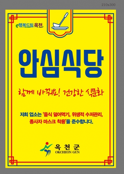 [충청뉴스큐] 충북 옥천군은 지난해에 이어 관내 일반음식점을 대상으로 안심식당을 추가 지정했다고 16일 밝혔다.