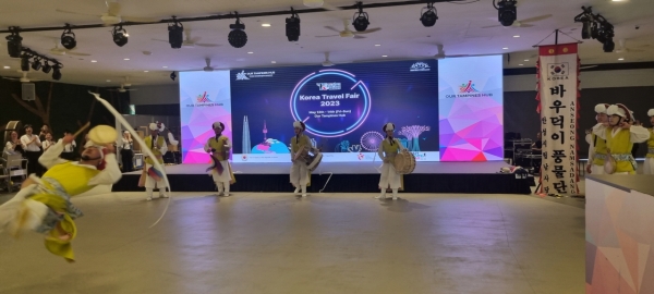 [충청뉴스큐] 안성남사당바우덕이풍물단이 한국관광공사 싱가포르 지사의 초청으로 참가한 “싱가포르 KOREA FAIR 2023” 행사에서 공연을 펼쳐 관람객의 열띤 환호를 받았다.