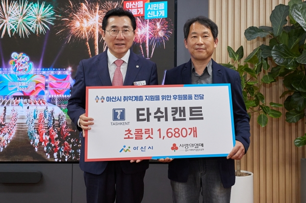 [충청뉴스큐] 타쉬캔트가 지난 16일 아산시에 취약계층 아동을 위해 초콜릿 1680세트를 후원했다.