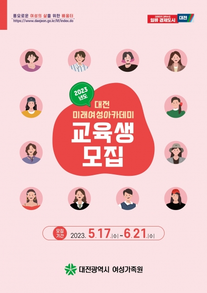 [충청뉴스큐] 대전여성가족원은 5월 17일부터‘2023년 대전 미래여성아카데미’교육생 100명을 모집한다고 밝혔다.