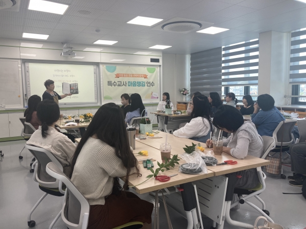 이번 연수에 참여한 강 교사는 “마음챙김 연수에 참여해서 그림책 이야기를 들으면서 나를 돌아보게 됐고 다른 선생님과 이야기 나누고 생화를 만지면서 잠시나마 일상을 잊고 쉬어갈 수 있었다.