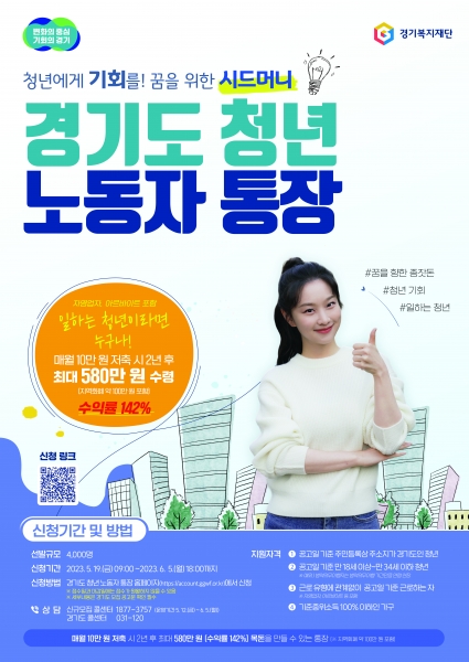 [충청뉴스큐] 경기도가 청년 노동자의 자산형성을 돕는 ‘2023년 경기도 청년 노동자 통장’ 참여자 4천 명을 5월 19일부터 6월 5일까지 모집한다.