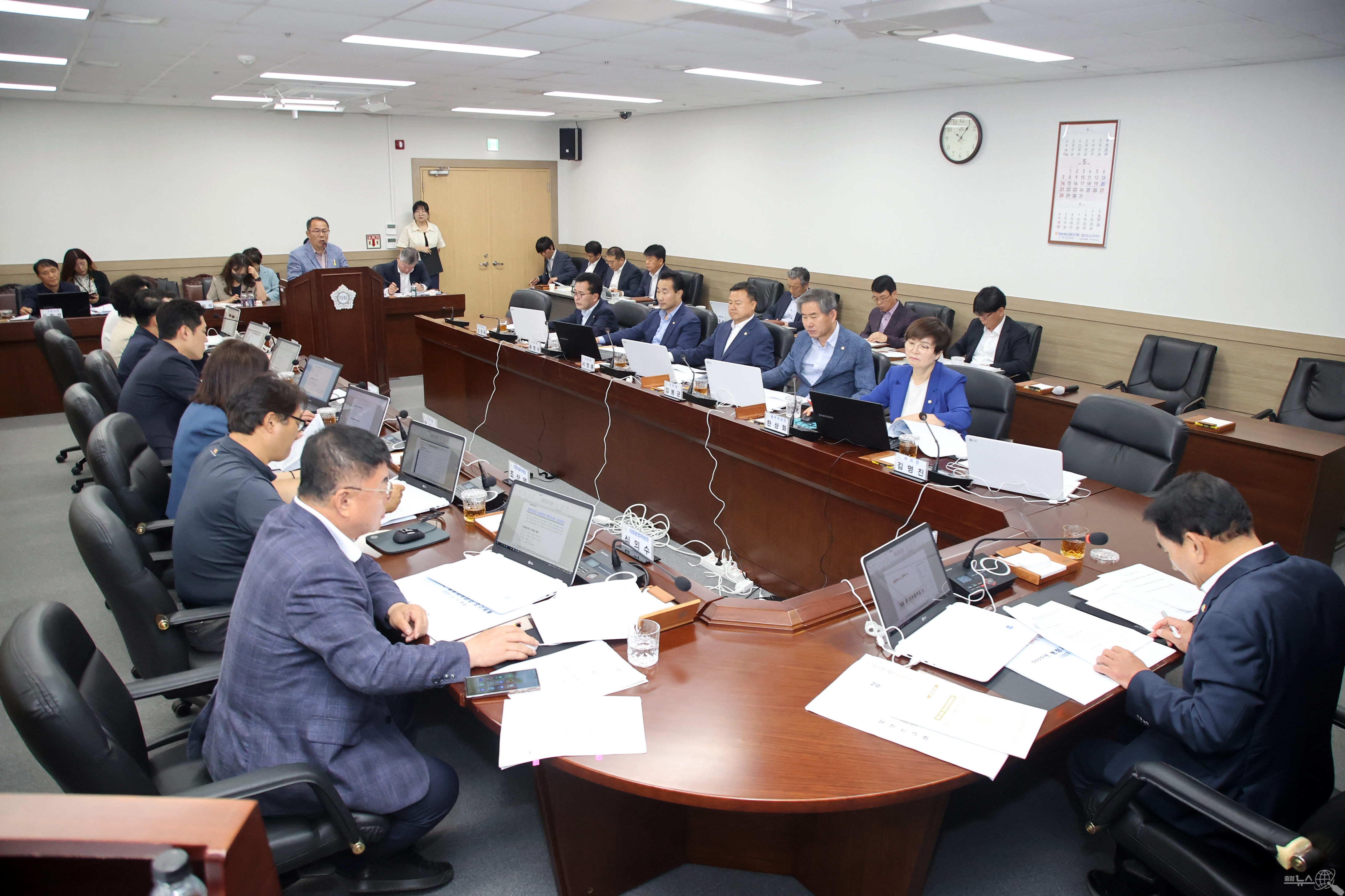 당진시의회(의장 김덕주)는 지난19일 의회 대회의실에서 5월 중 의원출무일을 열어 시정 현안사항에 대한 보고를 청취하고 정책 제안과 다양한 의견을 제시하는 등 심도 있는 토론을 진행했다고 밝혔다.
