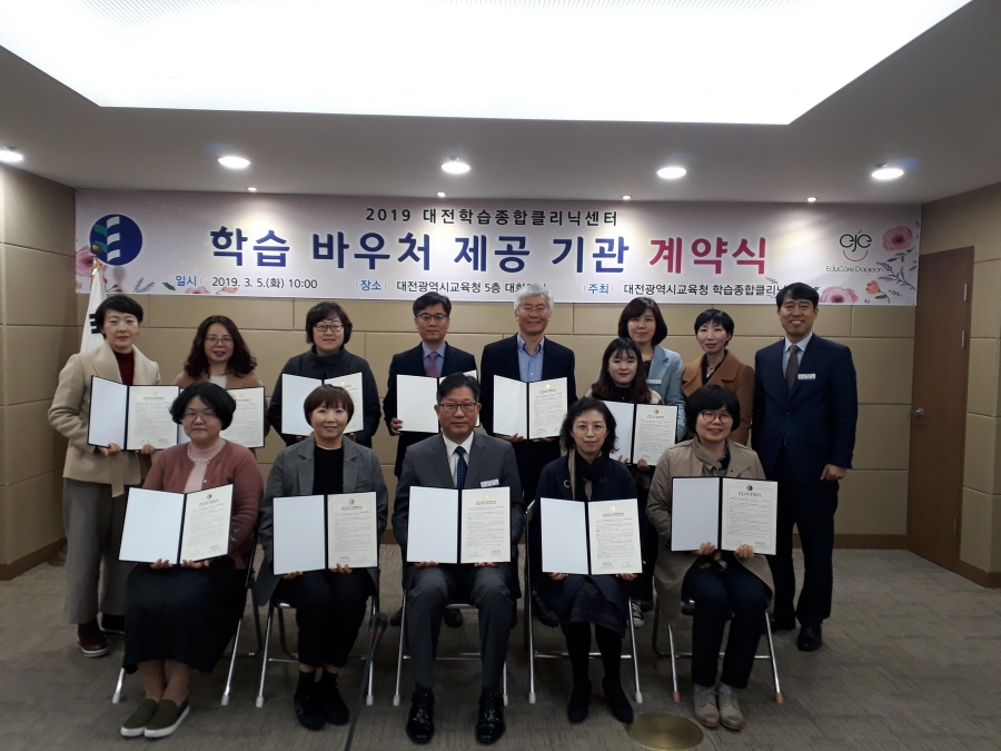 대전광역시교육청(교육감 설동호)은 3월 5일(화) 학습 바우처 제공 기관과 계약을 체결했다“고 밝혔다. 계약을 체결한 학습 바우처 제공 기관은 전문 의료 기관 3곳, 전문 심리 상담 기관 7곳으로 구성되어 있으며, 심리·정서적인 어려움을 가지고 있는 학습 부진 학생들에게 전문적 지원에 적극 나선다. 학습 바우처 제공 기관으로 선정된 곳은 ▲지정신건강의학과, ▲지정신건강의학과, ▲휴정신과의원, ▲건신상담심리센터, ▲다온심리상담센터, ▲도담도담심리상담센터, ▲동백심리상담센터, ▲생각과마음아동교육상담센터, ▲채원심리상담연구소, ▲행복나무아동교육상담센터 총 10곳이다. 올해 학습 바우처 제공 기관 계약을 체결한 기관은 공모를 통해 선정되었으며, 올해 말까지 불안이나 우울증 등으로 학습 부적응을 보이고 있는 대전 지역 고등학생들에게 심리검사와 심리 상담 및 치료 서비스를 지원하게 된다. 학습 컨설팅을 통해 지원 대상자로 선정이 되면, 학생이 기관을 방문하여 서비스를 받거나, 상담사가 직접 학교를 방문하여 학생에게 상담 서비스를 제공한다. 대전교육청 고유빈 중등교육과장은“학습종합클리닉센터의 학습 바우처 제공 사업을 통해 학생들의 학습 상처의 원인을 찾고 내면을 어루만져, 학습 지원뿐만 아니라 관계적 측면도 전문적으로 지원할 것”이라고 말했다.