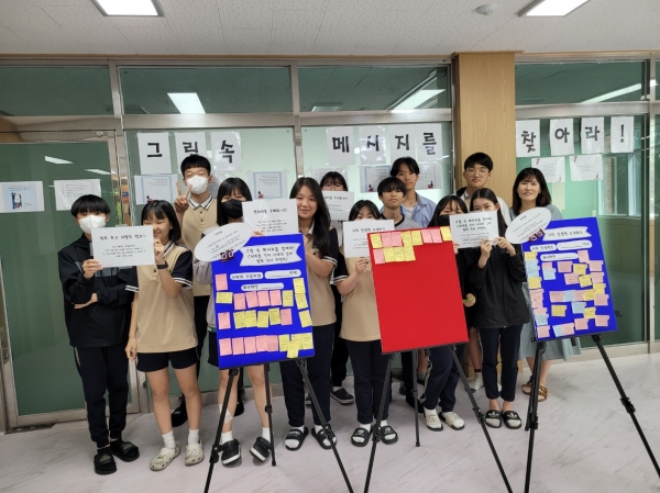 특히 5월 가정의 달을 맞이해 선정한 ‘세계를 건너 너에게 갈게’라는 도서의 원화를 보고 자신의 생각을 적어 보는 ‘그림 속 메시지를 찾아라’ 프로그램에서는 가족의 의미에 대해 다시 한번 생각해 보고 간단한 소감을 적어보는 활동이 이루어졌다.