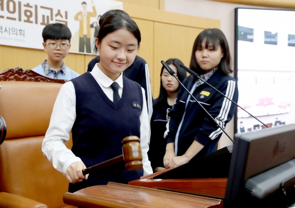청소년의회교실에 참여한 변동중학교 학생들은 안건상정, 자유발언, 찬반토론 등을 직접 진행하며 1일 시의원으로서의 의정활동을 펼쳐보는 경험을 하게 됐다.