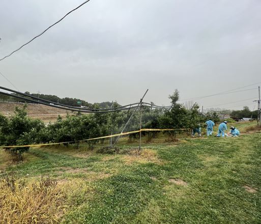 이번에 확진된 농가는 2곳으로 총 1ha의 사과 과수원이며 과수화상병 정기 예찰 기간에 의심주로 분류돼 정밀진단 검사 결과 확진 판정을 받았다.