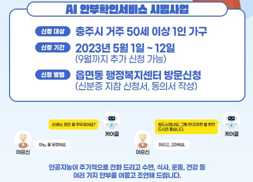 [충청뉴스큐] 충주시는 AI가 전화를 걸어 1인 가구 등의 건강을 챙기는 AI 케어콜 서비스를 24일부터 시작한다고 밝혔다.