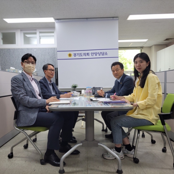 [충청뉴스큐] 경기도의회 김성수는 23일 도의회 안양상담소에서 관양동 재개발 관련 민원으로 안양시청 도시정비과 관계자들과 면담을 가졌다.