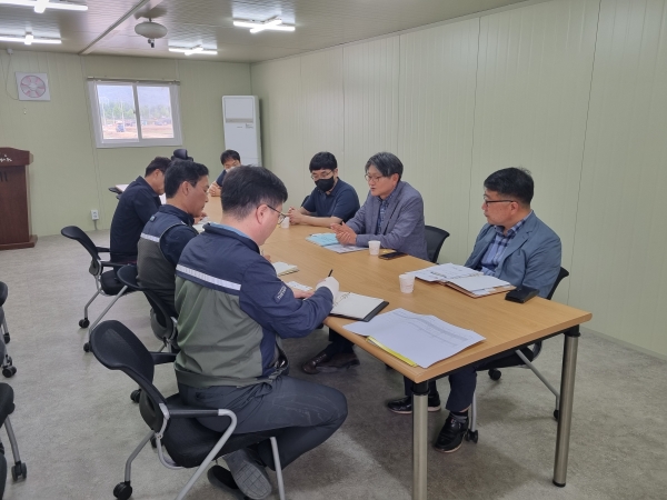 이날 현장 사무소에는 시 관계자와 건설 현장 관계자가 서로 만나 부동산 경기 침체와 높은 금리로 인해 지역의 건설업체가 어려움을 겪는 상황을 함께 공감하고 지역건설업체와의 상생을 위한 지역 내 자재 우선 구매 지역 건설근로자 우선 고용 지역 건설기계 우선 사용 등에 협조를 요청했다.