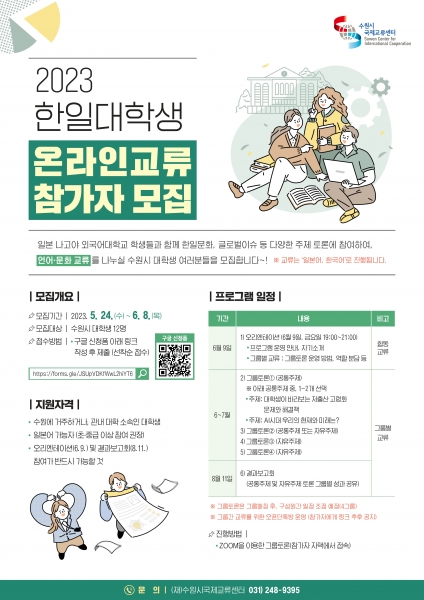 [충청뉴스큐] 수원시국제교류센터는 ‘한일대학생 온라인교류’에 참가자를 6월 8일까지 모집한다.