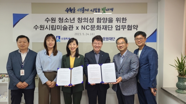 수원시립미술관과 NC문화재단은 24일 수원시청에서 업무 협약을 체결하고 협력을 약속했다.