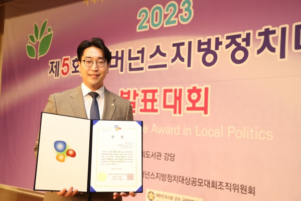 [충청뉴스큐] 김도현 안양시의원이 지난 24일 국회도서관에서 개최된 ‘2023 거버넌스지방정치대상’에서 우수상을 수상했다.