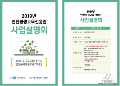 [충청뉴스큐] 인천평생교육진흥원은 오는 11일 오후 2시 인천문화예술회관에서 ‘2019년 인천평생교육진흥원 사업설명회’를 개최한다.