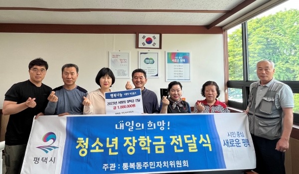 [충청뉴스큐] 평택시 통복동 주민자치위원회는 지난 24일 통복동 행정복지센터를 방문해 ‘사랑의 장학금 전달식’을 가졌다.