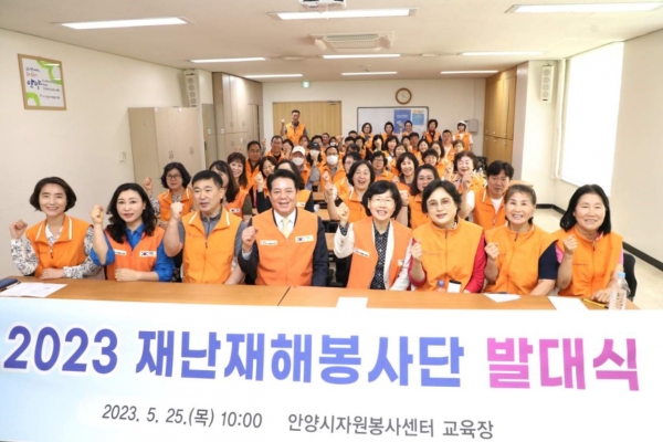 [충청뉴스큐] 안양시 자원봉사센터는 재난 상황 발생 시 신속하고 체계적인 복구 활동을 위한 15개 단체 1600여명 규모의 ‘재난재해봉사단’을 구성해 25일 자원봉사센터 교육장에서 발대식을 개최했다고 밝혔다.