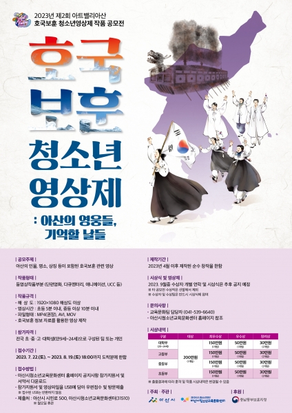 영상제의 공모 주제는 아산의 인물·명소·상징 등이 포함된 호국보훈관련 영상이며 공모 대상은 전국에 거주 또는 재학중인 만 9~24세의 청소년이다.