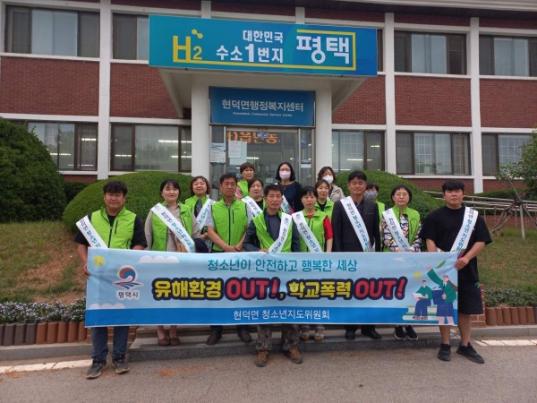 [충청뉴스큐] 평택시 현덕면 청소년지도위원회는 지난 25일 청소년의 달을 맞아 13명의 지도위원과 공무원 2명이 참석한 가운데 현덕파출소, 우체국 주변 상가와 편의점, 카페, 요식업소 등을 방문해 관내 청소년 유해환경 시설 점검 및 캠페인 활동을 했다.